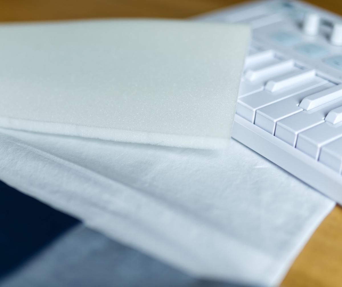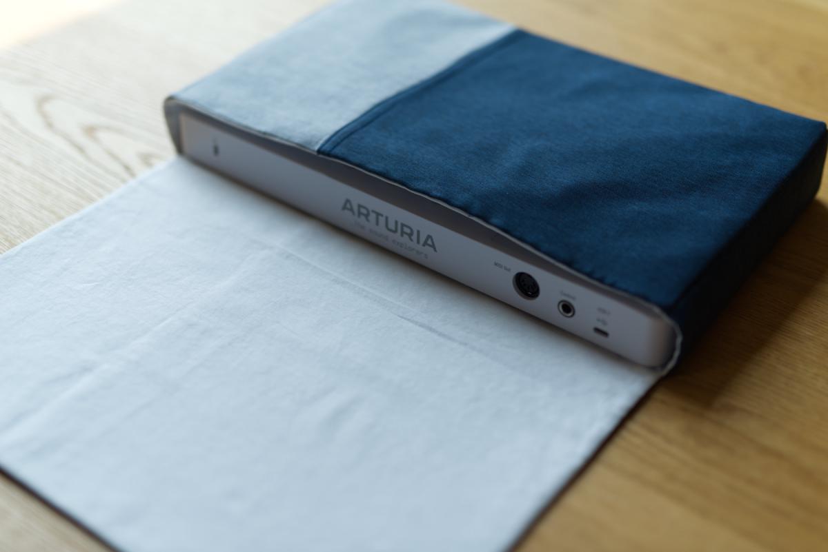 After a number of hours of overthinking the design, I went with the classic messenger bag style and a sponge insert that goes over the keys and the pads.